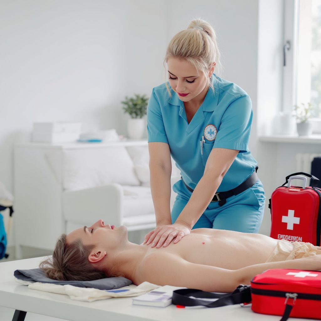 - Lélegeztetés (ha lehetséges és képzettek vagyunk rá): 30 mellkasi kompresszió után adjunk két befújásos lélegeztetést. Ehhez hajtsuk hátra a sérült fejét, emeljük meg az állát, fogjuk be az orrát, és szájunkat szorosan illesztve a sérült szájára, fújjunk bele levegőt körülbelül egy másodpercig. Figyeljük, hogy a mellkas megemelkedik-e. Ha nem vagyunk képzettek a lélegeztetésre, vagy nem érezzük magunkat biztonságban, folytassuk a folyamatos mellkasi kompressziókat a mentők kiérkezéséig. A legfontosabb a keringés fenntartása.