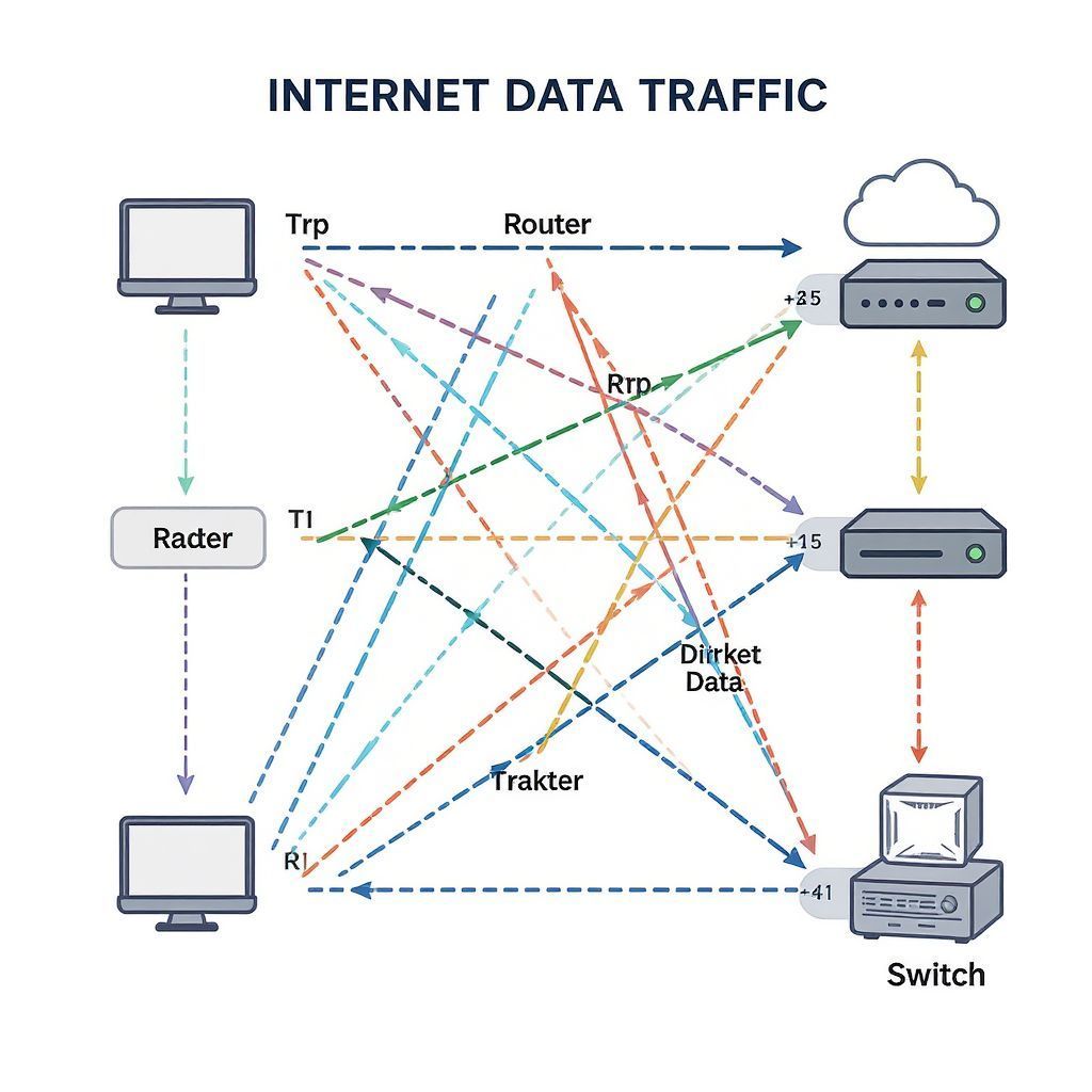 Amikor otthonról internetezünk, az adatforgalmunk a helyi hálózatunkból (routerünkön keresztül) az internetszolgáltatónk hálózatába jut, majd onnan tovább a nagyobb, regionális és globális hálózatokon keresztül, amíg el nem éri a célállomást. Ez a komplex rendszer biztosítja, hogy a világ bármely pontjáról elérhessünk egy másik ponton lévő szervert vagy eszközt.