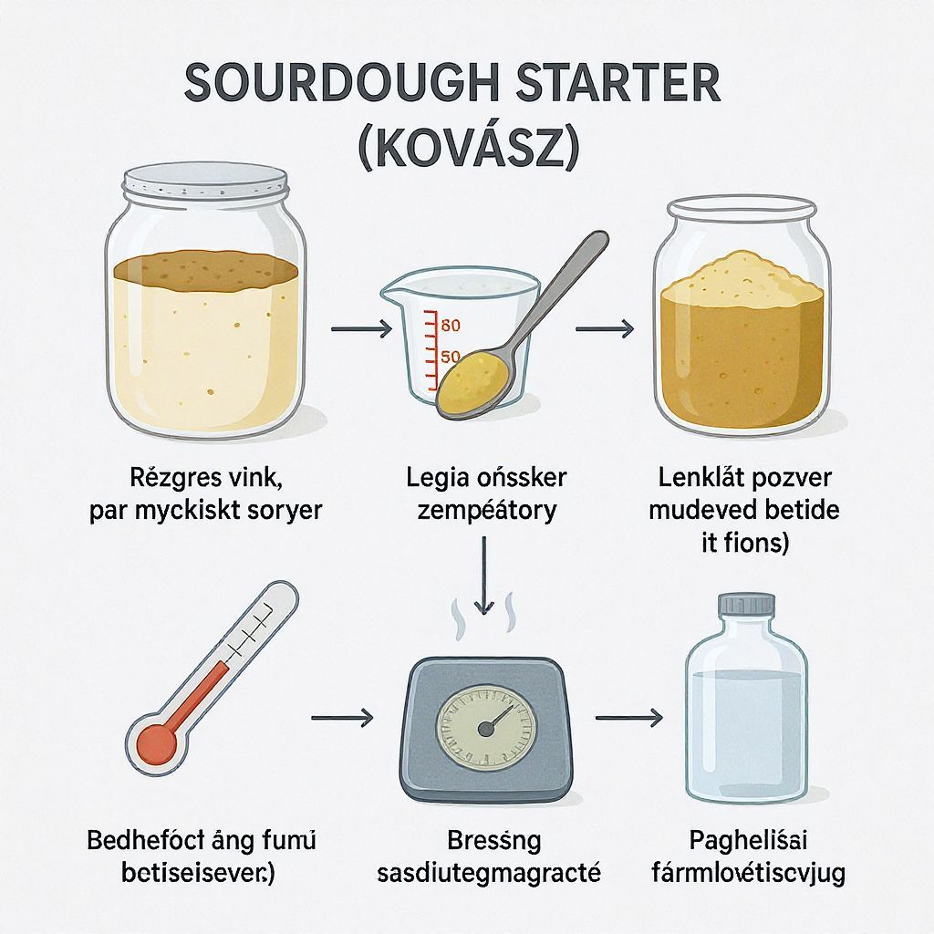 A kovász egy élesztő- és baktériumkultúra, amely a lisztben lévő cukrokat fogyasztja, és közben gázokat (szén-dioxidot) és savakat termel. Ezek a gázok felelősek a kenyér térfogatáért és lyukacsos szerkezetéért, míg a savak adják a kovászra jellemző mély, komplex ízeket és javítják a kenyér eltarthatóságát. Ha nem etetjük rendszeresen, a mikroorganizmusok éhezni kezdenek, aktivitásuk csökken, és a kovász elgyengülhet, vagy akár tönkre is mehet.