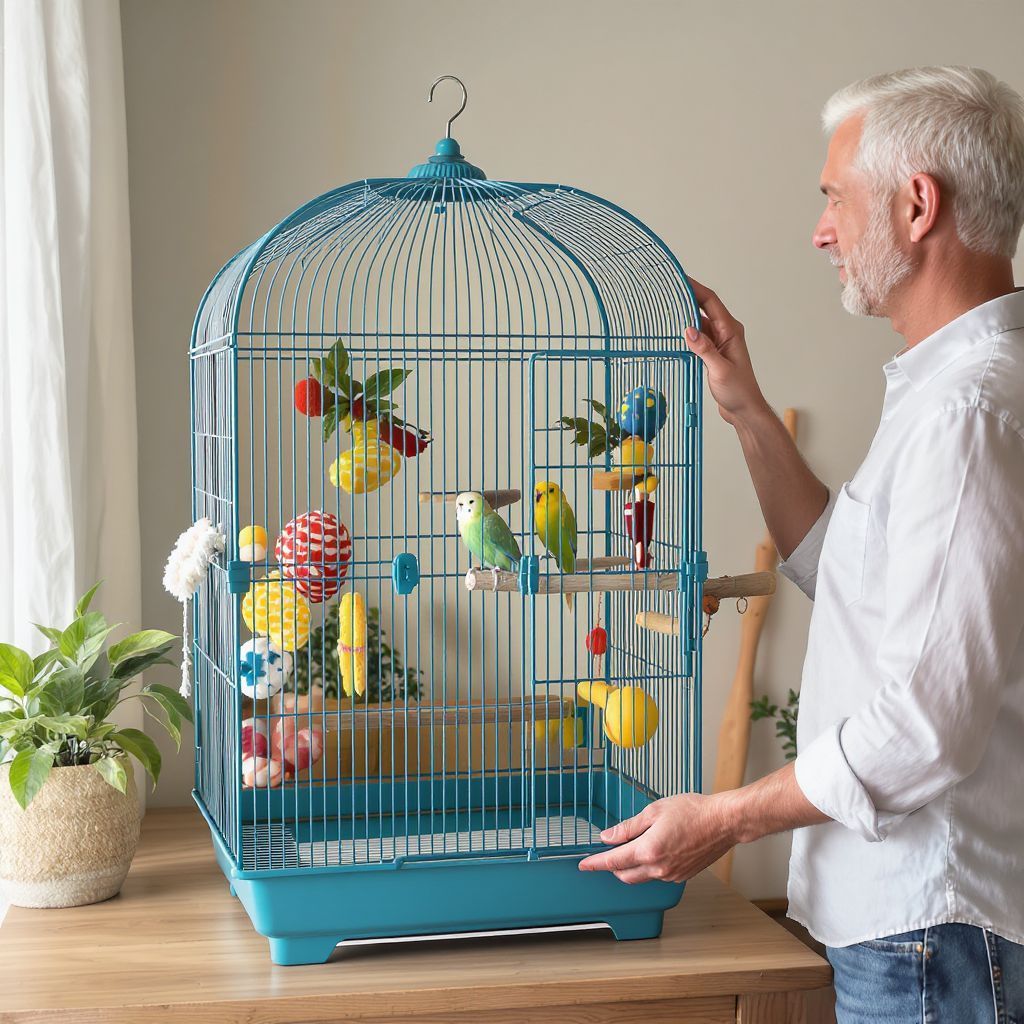 • Játékok és stimuláció: Helyezzünk el néhány biztonságos játékot. Ha lehetséges, vigyünk át néhány ismerős játékot a régi kalitkából, hogy a madár otthonosabban érezze magát.