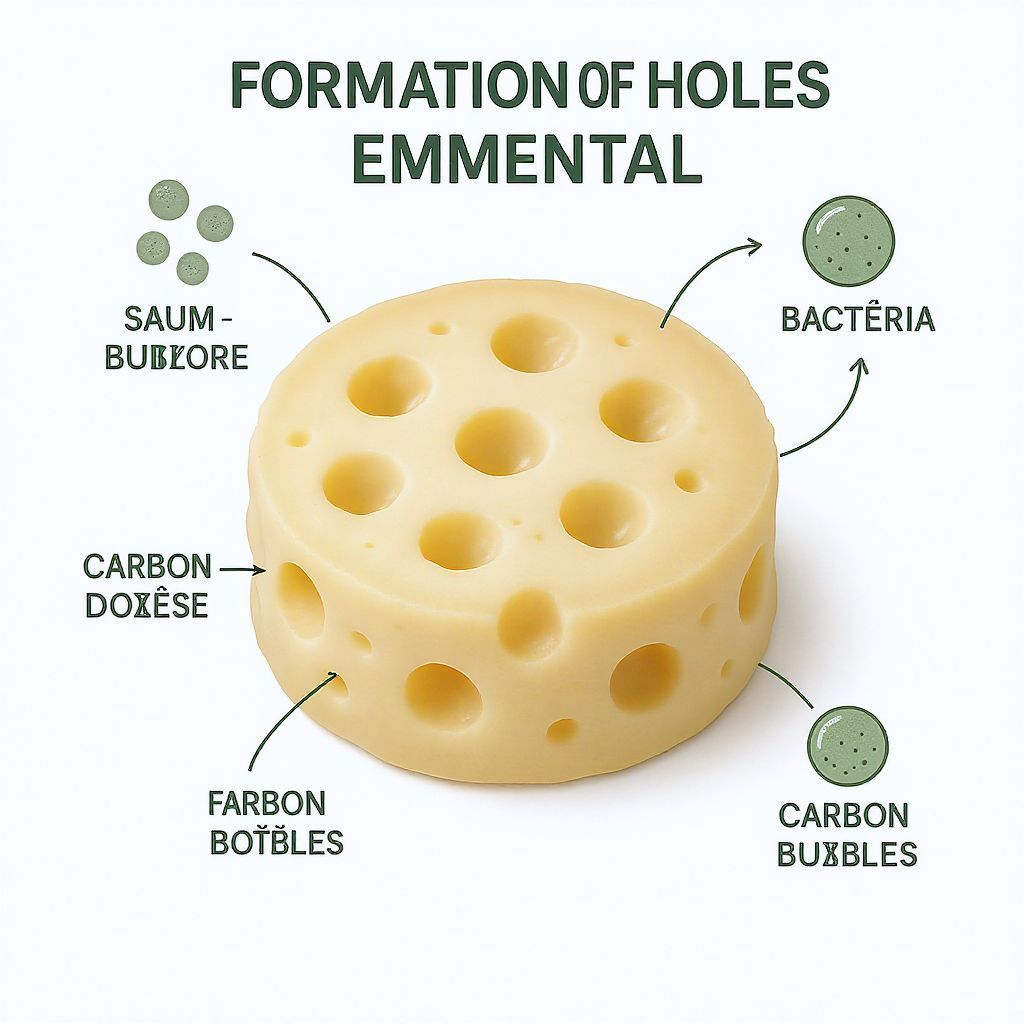 Ebben a meleg környezetben a Propionibacterium freudenreichii optimálisan működik. A tejsavat propionsavvá, ecetsavvá és szén-dioxiddá alakítja. A propionsav és az ecetsav hozzájárulnak az ementáli sajt jellegzetes, édes-diós ízéhez. A szén-dioxid azonban gáz halmazállapotú, és mivel nem tud azonnal távozni a sajt tömör szerkezetéből, apró buborékok formájában felgyülemlik a sajt belsejében. Ezek a gázbuborékok fokozatosan növekednek, és miközben a sajt érik és a textúrája rugalmasabbá válik, a buborékok nagyobb üregekké, azaz a jellegzetes lyukakká tágulnak.