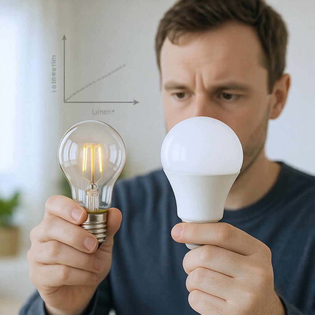 Ne a wattban gondolkodjon, hanem a lumenben! A lumen (lm) a fényáram mértékegysége, amely azt fejezi ki, mennyi fényt bocsát ki az izzó. Hasonlítsa össze a régi izzó lumen értékét az új LED-izzóéval, hogy hasonló fényerőt kapjon. Egy 60W-os hagyományos izzó kb. 800 lumennek felel meg, míg egy 100W-os kb. 1600 lumennek.