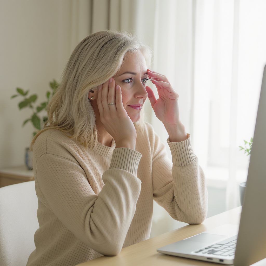 • Halánték masszázs: Ujjbegyeinkkel gyengéden masszírozzuk meg a halántékunkat körkörös mozdulatokkal 1-2 percig. Ez segít enyhíteni a fejfájást és a szemfeszültséget.